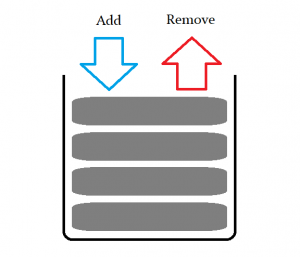 In case you want to implement data structure stack, you have to find out what are its behaviors. In a nutshell, stack is a data structure that performs LIFO (Last In First Out), it adds and removes items on the same place called TOP, think of pile of books, you add to the top of the pile and you take a book from the top of the pile.